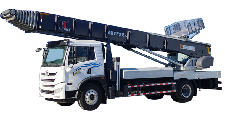 本公司55米云梯車最大作業(yè)高度55米,相當(dāng)于18層樓高,新型斷面梯臂保證產(chǎn)品質(zhì)量,最大承載貨物重量400公斤。 底盤采用重汽豪沃底盤,故障率低,可靠性高。 貨架采用新型斷面鋁合金結(jié)構(gòu)形式質(zhì)量可靠,安全有保證; 車輛支腿采用上海寶鋼700號高強鋼板,保證整車支撐安全。